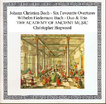 JOHANN CHRISTIAN & WILHELM FRIEDEMANN BACHSix Favourite OverturesJohann Christian Bach - Six Favourite OverturesWilhelm Friedemann Bach - Duo & TrioThe Academy of Ancient MusicChristopher Hogwood, direttore1977 - CD - L'Oiseau LyreRistampa 2014 in The Bach Recordings (CD 19)