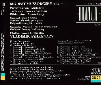 MODEST MUSSORGSKYPictures at an ExhibitionOriginal Piano & Orchestral VersionPhilharmonia OrchestraVladimir Ashkenazy1983/86 - CD - Decca